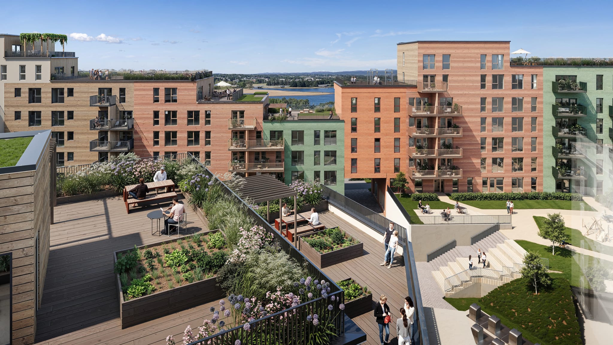 Etter hvert som solen og dagslyset beveger seg, kan dere gjøre det samme – husene er utformet med tanke på at dere skal kunne være ute på forskjellige nivåer og mot forskjellige himmelretninger. Dere vil bo i et vakkert landskap – og får muligheten til å nyte det gjennom hele dagen.