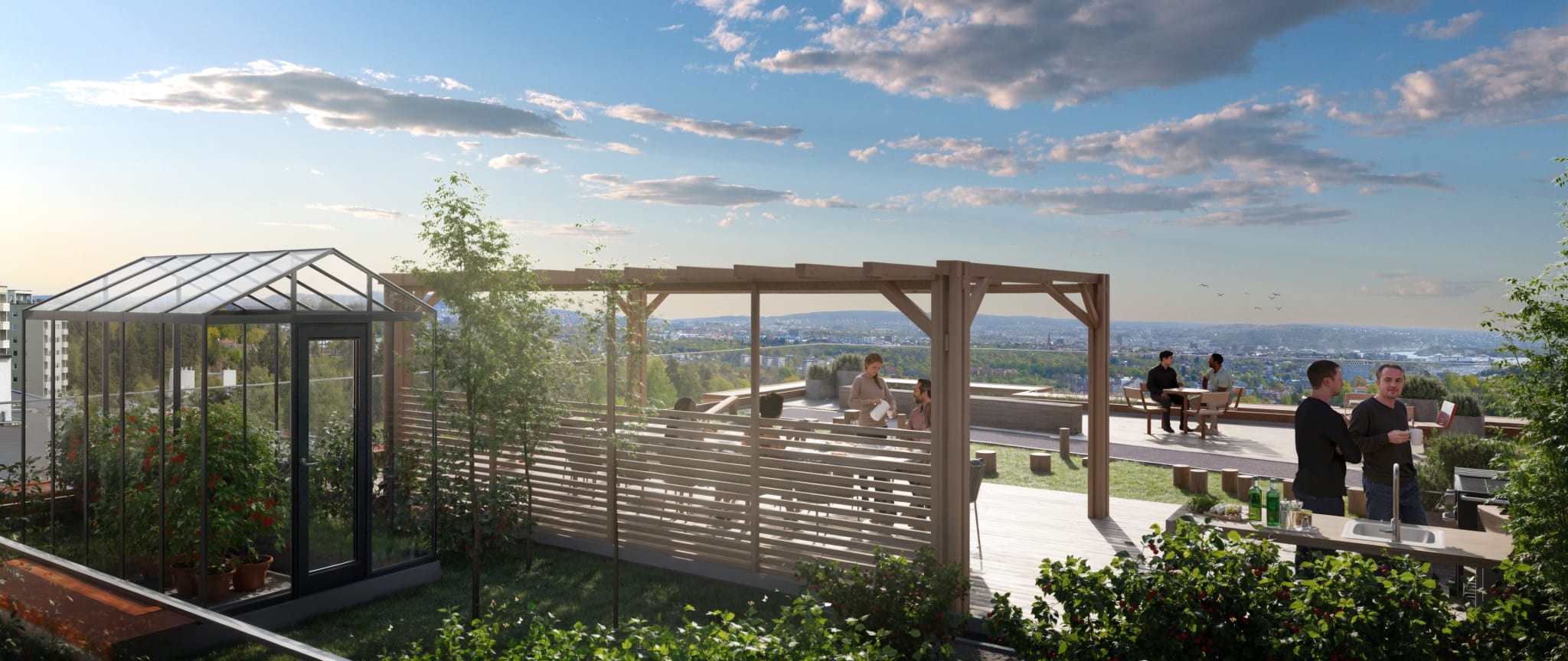 Ullernhøyden handler ikke bare om selve leiligheten, men også om livet du får rundt deg. På toppen av bygget planlegges en felles takterrasse utenom det vanlige – et sted der velvære, utsikt og sosialt samvær går hånd i hånd."Alt" innen rekkevidde.