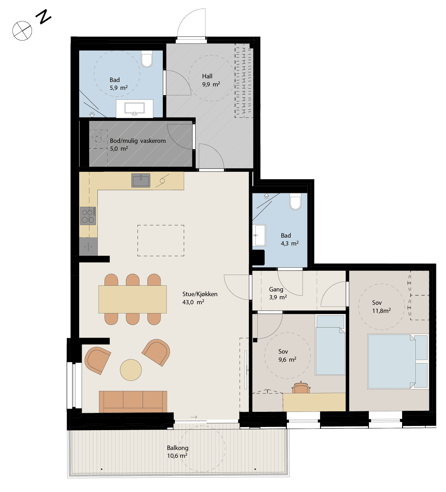 En leilighet som er mindre enn hva man er vant med fungerer best når planløsningen gjør jobben. Hos oss er rommene delt opp i tydelige soner, med naturlig plassering av kjøkken, oppholdsrom og soverom. Resultatet er luftige oppholdsrom, bedre flyt og generelt smartere løsninger på færre kvadratmeter.