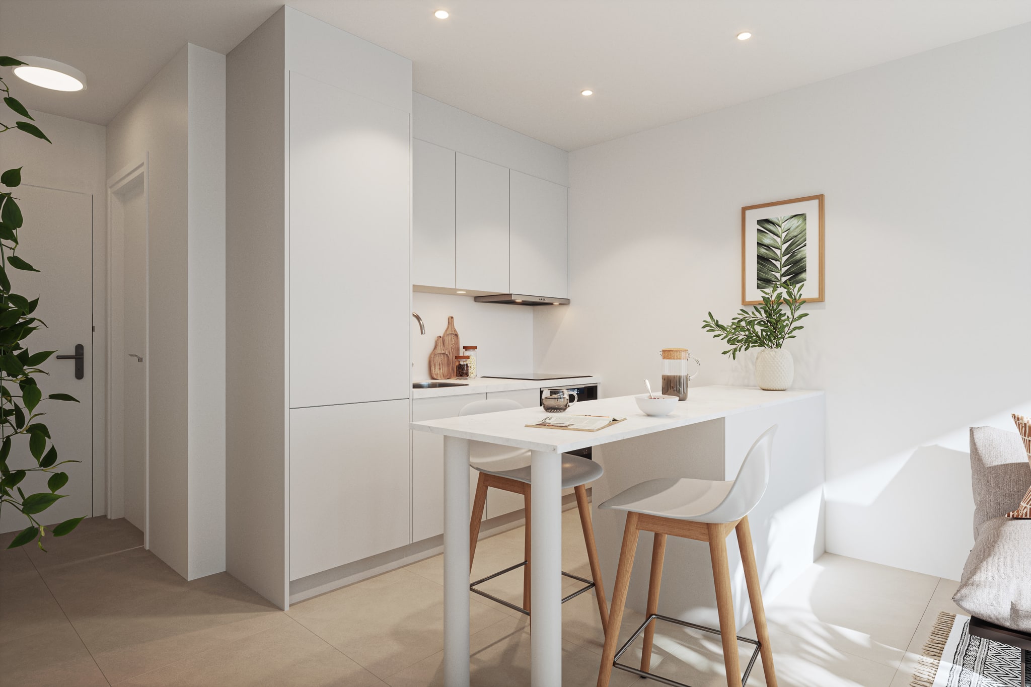 Hver leilighet i Palmera Sea View består av stue, kjøkken, soverom, bad og egen terrasse. Det er foldedører mellom stue og terrasse.